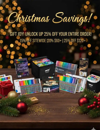 Domenica pomeriggio, pioggia battente fuori e noia in agguato — abbiamo aperto la confezione di pennarelli HOTU e la stanza si è accesa di scintille, letteralmente! I miei bimbi volevano decorare qualche sasso raccolto in vacanza, io puntavo a rifinire il mio quaderno di scrapbooking: con le 12 tonalità metal‑glitter ce n’era per tutti.