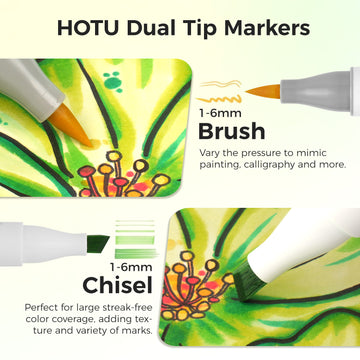 These dual-tip markers are perfect for sketching, illustration, anime, journaling, card making, adult coloring books, and design projects. The brush tip handles expressive strokes, while the chisel tip covers large areas efficiently.