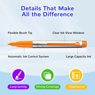 🎨Effortless Control — Soft brush tip for precise 0.7-6mm lines.