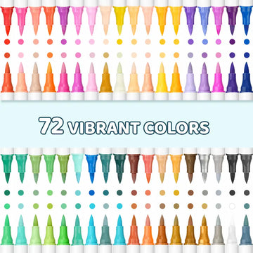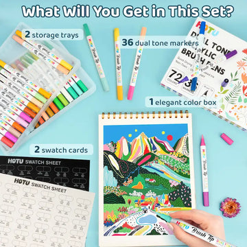 Hotucolor 72-Color Acrylic Paint Markers | Dual-Color Brush Tip
